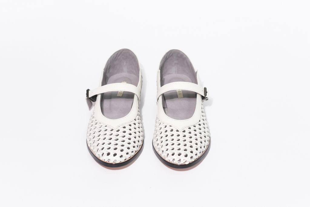 鞋面材質:白色編織牛皮+白色縮花羊皮