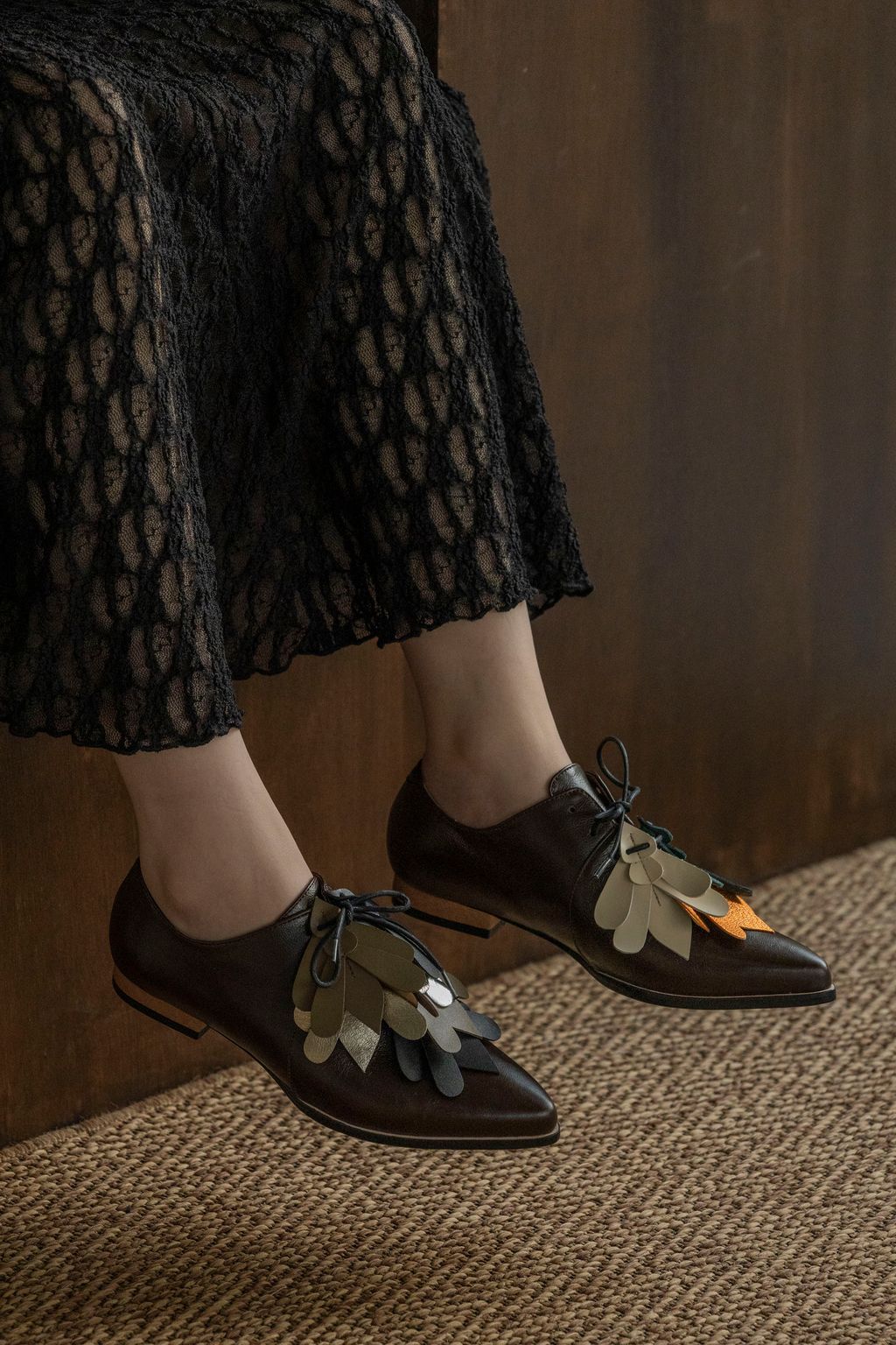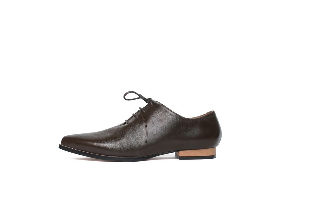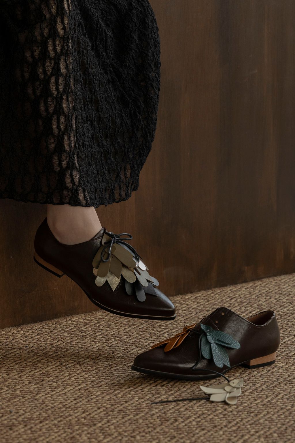 鞋面材質:咖啡色油蠟皺感胎牛皮