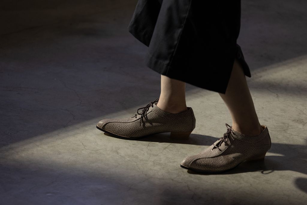 保護色的紋理,置入基本綁帶牛津鞋款